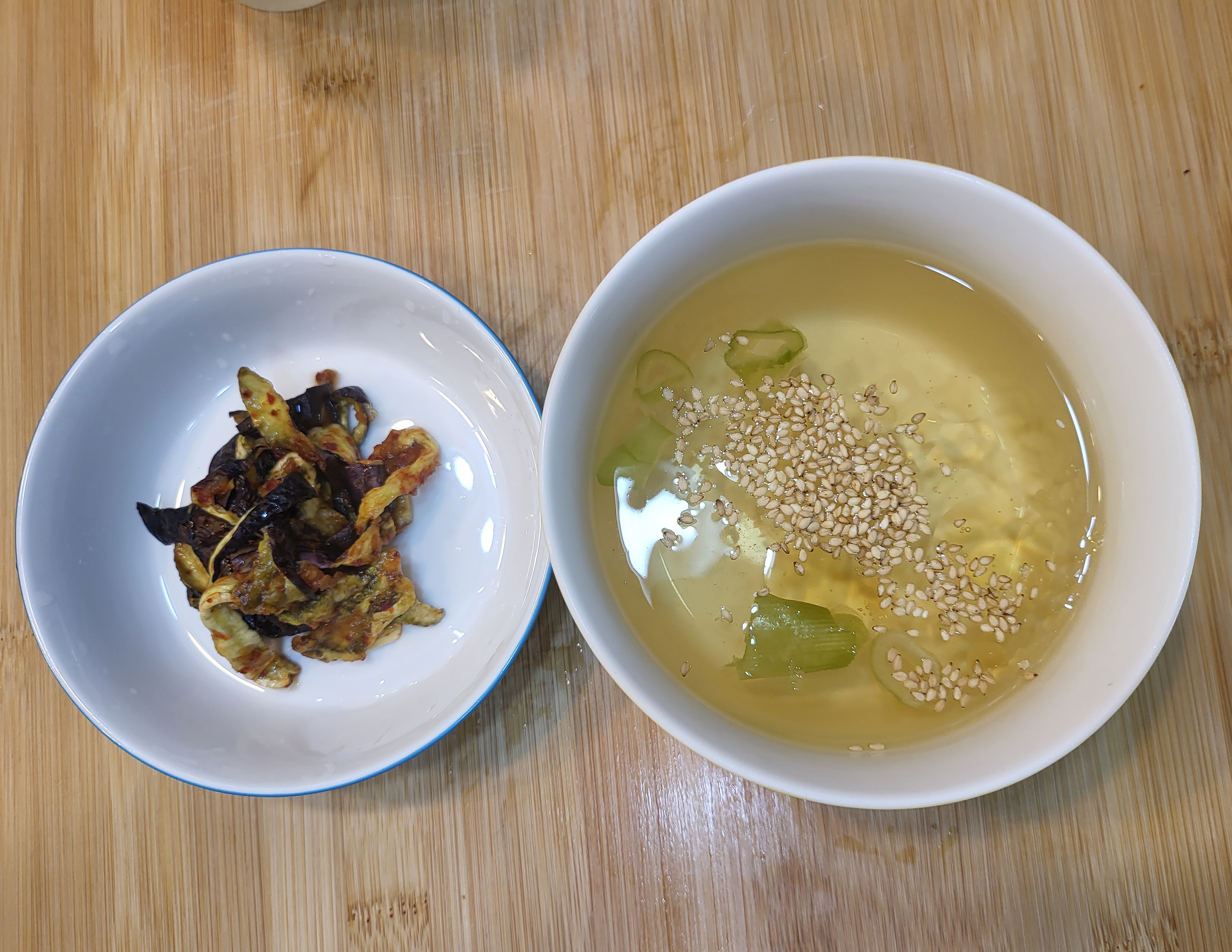 저는 가지를 1개만 해서 양념을 반으로 줄였습니다. 일단 생수로 국물을 휘리릭 만들어 양념한 가지만 넣으면 되니 만들기 쉽고 생각보다 맛도 괜찮답니다. 가지를 좋아하지 않는 열할아버지도 평소 좋아하는 냉국이라 그런지 잘 먹네요.