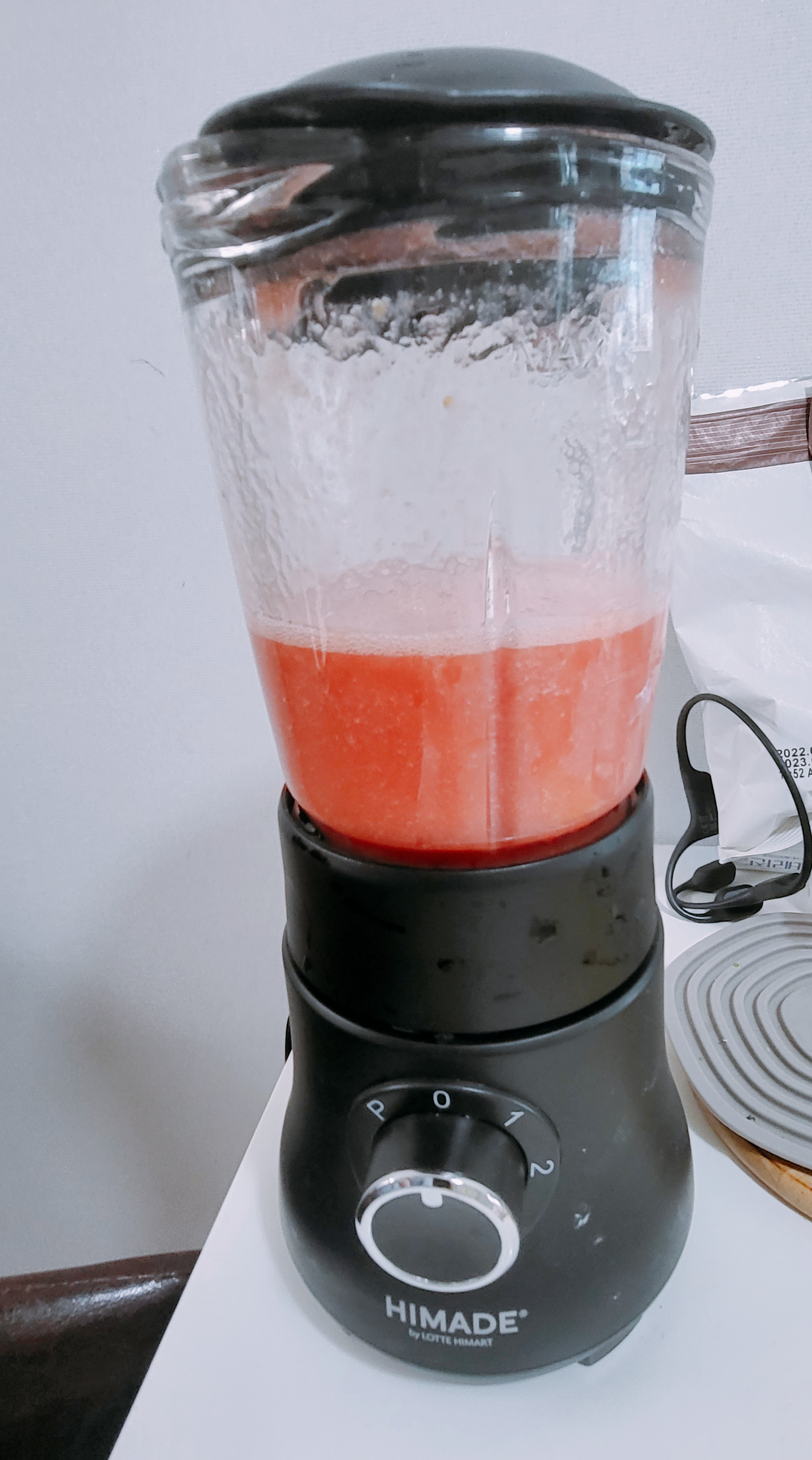 1. 수박은 과육만 발라 씨를 제거하고 믹서에 넣어 30초간 곱게 갈아줍니다.