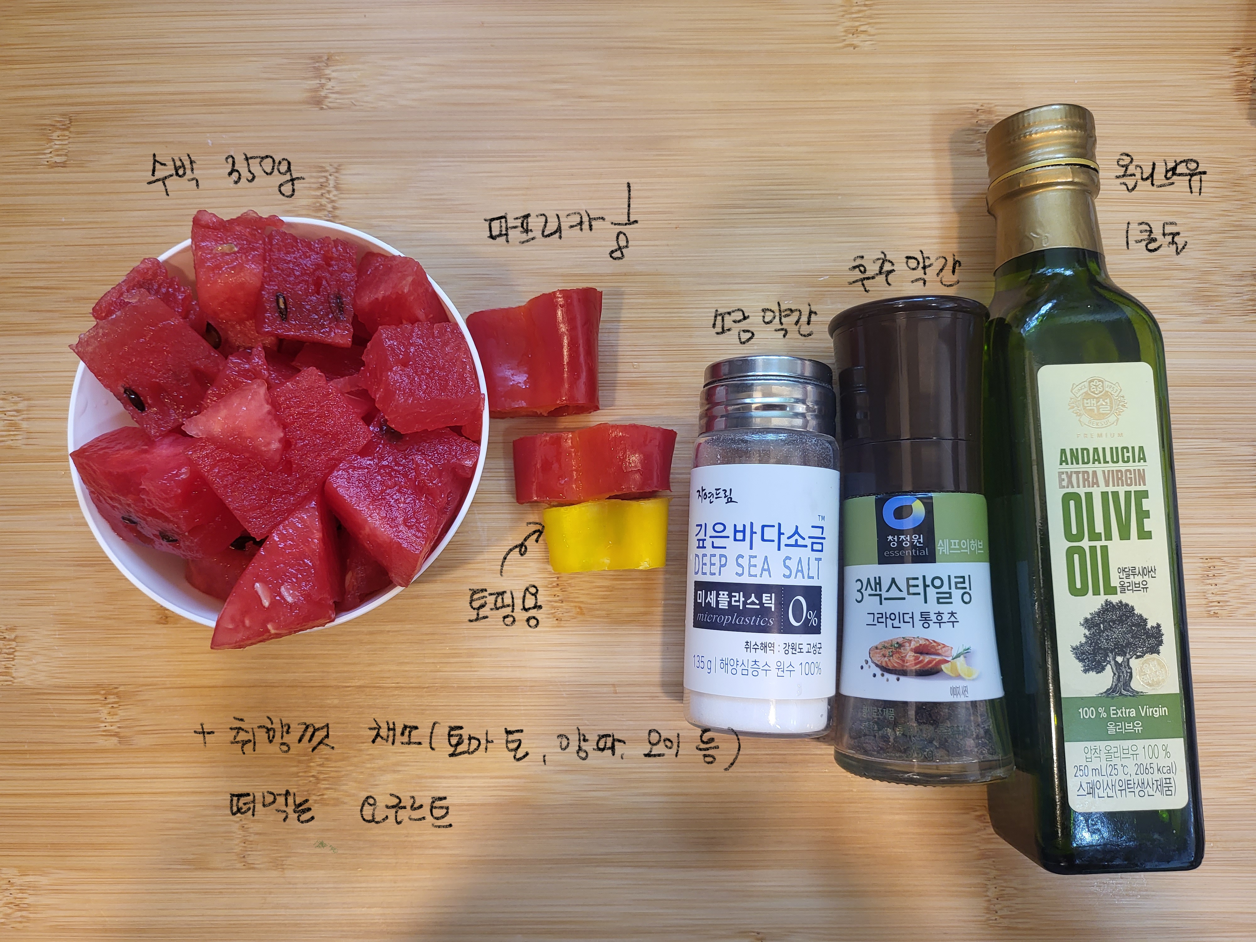 안녕하세요, 난할머니입니다. 지난주부터 진짜 폭염이라고 생각될 정도로 날씨가 덥네요. 오늘은 여름 하면 생각나는 수박! 집에서 먹다 남은 수박(..)으로 가스파초를 만들어보았습니다.
